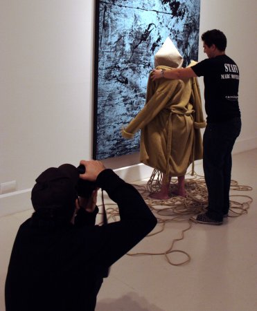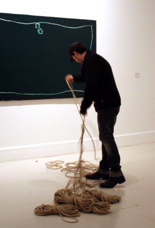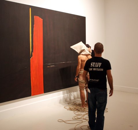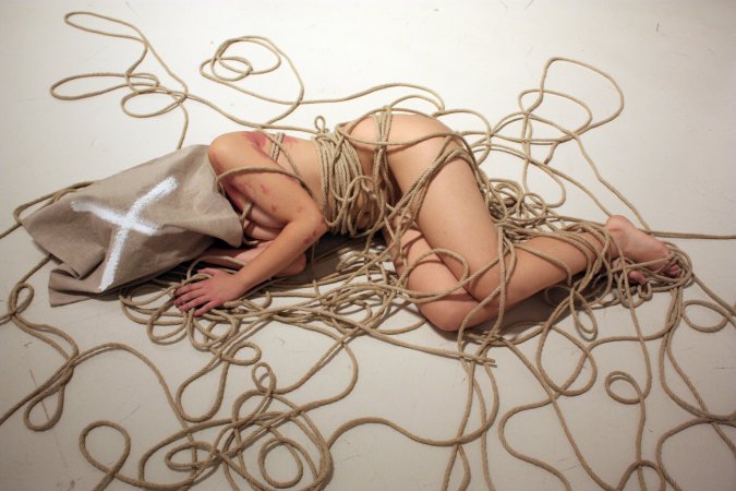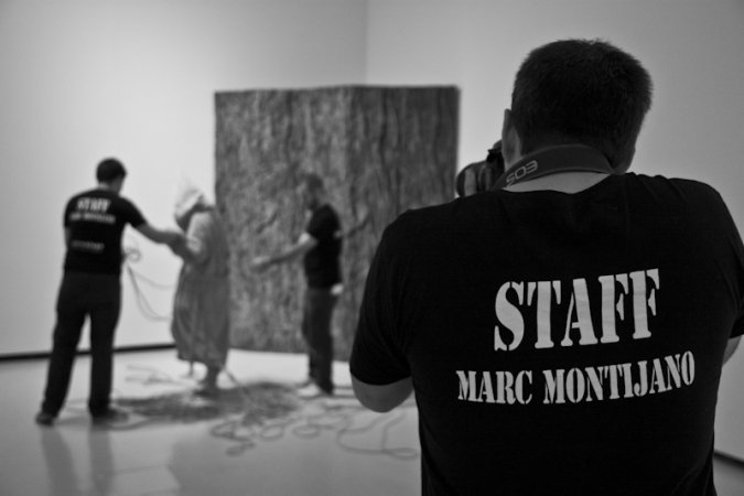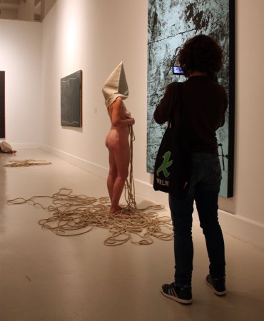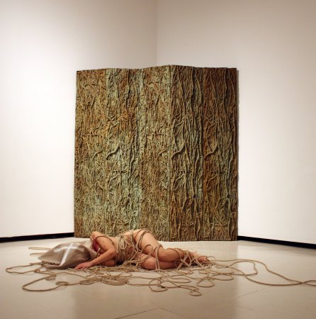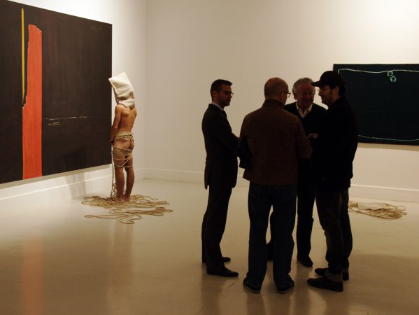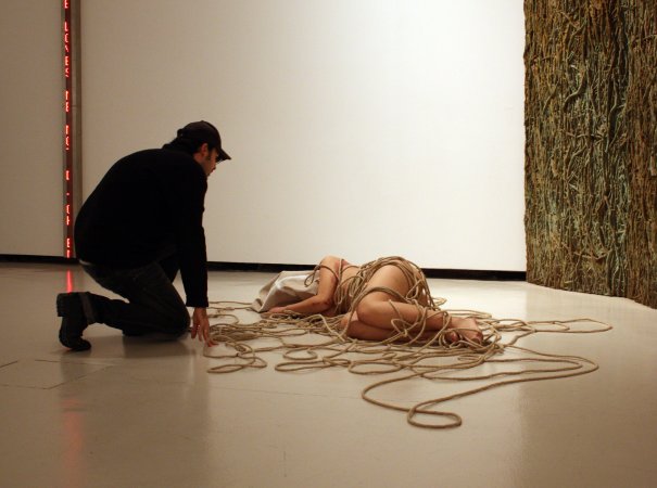 Para ello contó con sus característicos personajes en estado de metamorfosis. Personajes simbólicos en fase de evolución que posaron con la estética que caracteriza sus creaciones: desnudos, rodeados de cuerdas y con el rostro cubierto por un saco de tela. En esta ocasión, hizo un guiño a la primera performance realizada en el CAC Málaga, Los tres estados (octubre de 2010), y dispuso tres seres humanos, cada uno en una fase diferente de metamorfosis, cercanos en el espacio pero sin ninguna conexión. Una composición sencilla, para reflejar soledad y aislamiento.